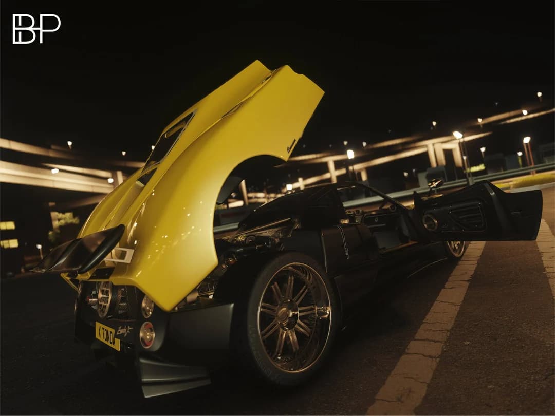 Extra A: Trunk Open Extra B: Fog Light Extra C : Frunk open Extra E & F: Doors Open The Pagani Zonda F Clubsport is a track-focused, lightweight, and extremely rare version of the Zonda F, utilizing a 7.3-liter AMG V12 engine tuned to produce 650 PS (641 hp). Released around 2006/2007, the "F" honors F1 driver Juan Manuel Fangio, while the Clubsport package adds upgraded performance parts, enabling 0-62 mph (100 km/h) in 3.6 seconds and a 214+ mph top speed.