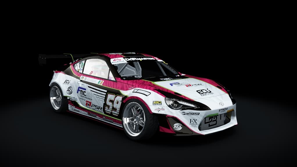 CDT Toyota GT86 - Jack Shanahan #59 --------------------------------------------------------------------------- Specs: - 3.0L 2JZ Pushing 957hp On 32PSI Of Boost - ECU Master Ecu - HGK Carbon Kevlar Kit - STRÖM DS-05 - Wisefab - BC Racing - Winters Diff - Samsonas 6-Speed Sequential Gearbox - Extreme S4 --------------------------------------------------------------------------- Credits: - Model : Carbon Drift Team - Body Kit : Carbon Drift Team - Wheels : Carbon Drift Team - Physics : Carbon Drift Team - Design : Carbon Drift Team - Sound : Carbon Drift Team