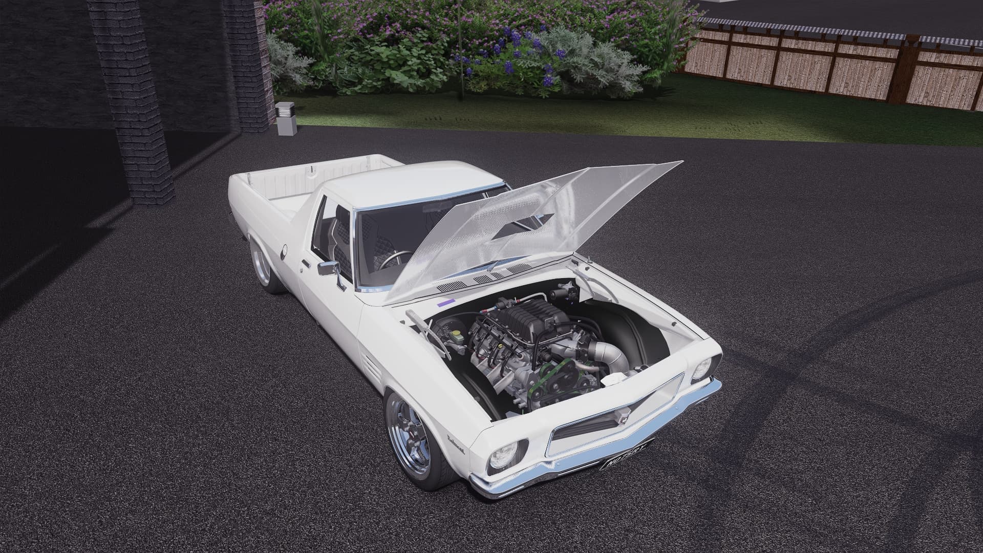 This build has a built Barra engine with 1300hp, paired with a TH400 threeโspeed gearbox, giving it realistic driving feel. It also includes launch control, twoโstep, a realistic power and sound, plus coloured tyre smoke for extra fun. The exterior features custom 22โinch Simmons wheels with the ability to change to stockies, Wilwood brakes, an XR8โstyle bonnet and refracted rear lights. It has a side screamer and dump pipe, complete with massive flames blasting out the side of it. Inside, the car has a full custom interior with a center console, FPV GTP seats, diamondโstitched door cards and seats, 310โbranded seatbelts and wheel airbag, and โURSLOWโ built into the seats. The electronics are upgraded with a Haltech UC10 dash featuring a 310 logo, a Haltech keypad, and a freshly relocated fuel cell and battery. Everything ties together to make a complete recreation of this amazing car. Features: Drivetrain & Performance Highโquality built Barra engine TH400 / 3โspeed transmission Side screamer & dump pipe Launch control + twoโstep Realistic power delivery & sound Coloured tyre smoke Wheels, Brakes & Exterior Custom 22" Simmons & stockies Wilwood brakes XR8โstyle bonnet Refracted rear lights Interior & Custom Fabrication Fully custom interior & dash Custom FPV GTP seats Diamondโstitched door cards & seats 310 seatbelts & wheel airbag โURSLOWโ embroidered into seats Custom center console Electronics & Controls Adjustable Haltech UC10 digital dash 310 logo integrated into UC10 dash Haltech keypad Fuel cell & battery recoated Extras: Animated Pulley's/Turbo Launch Control/2-Step - Kers Extra A - Bonnet & Right Door's Extra B - Boot & Left Door's
